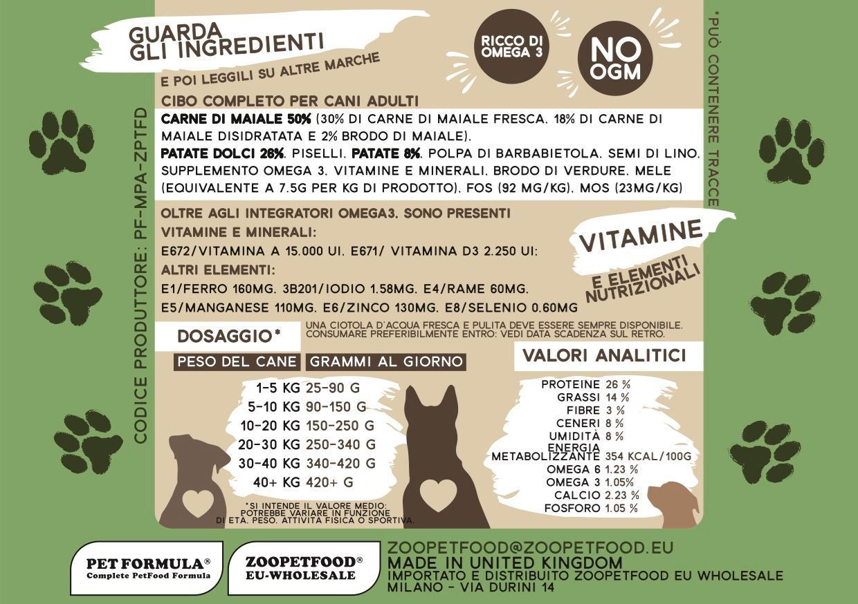 PETFORMULA Adulto MAIALE Patate e Frutta 10 KG