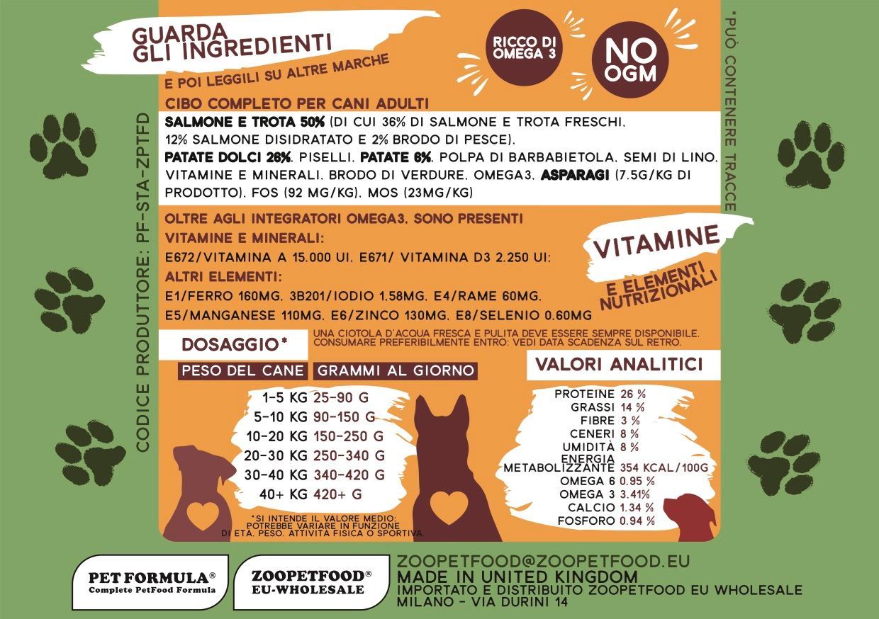 Dettaglio ingredienti PetFormula Trota, Salmone per Cani Adulti: